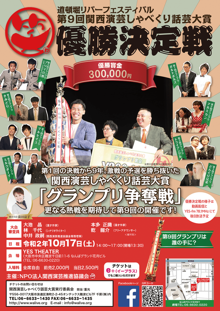 2020年10月17日(土)に開催されました「第9回関西演芸しゃべくり話芸大賞 優勝決定戦」で見事、グランプリを受賞したのは「ラフ次元」、準グランプリは「丸亀じゃんご」が受賞しました。